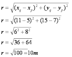 Contoh : Posisi sebuah partikel mula mula adalah ,kemudian berpindah ke posisi,dengan r1 = 8i - 2j dan r2 = 2i + 6j. Tentukan vektor perpindahannya!